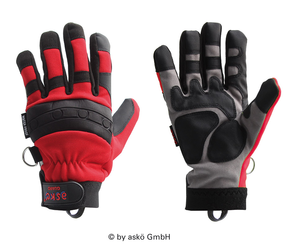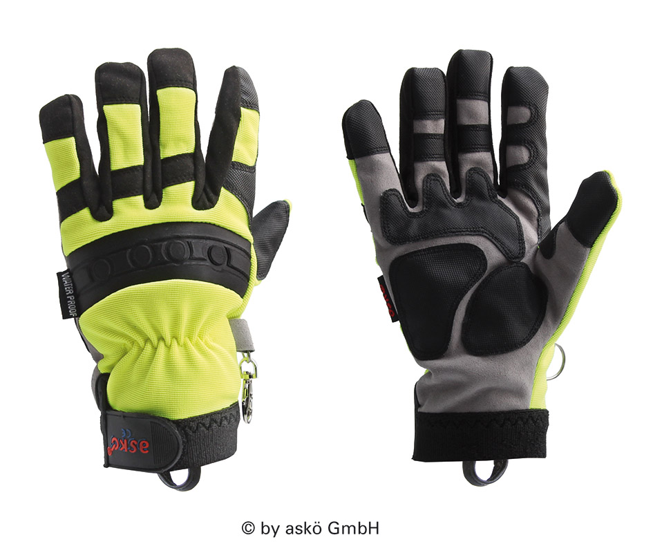 Equipment: the inserts in the inside hand offer additional protection. Reinforcement of the inner fingertips and index fingers and thumbs with water-repellent PU material. Due to the comfortable double inner lining this glove is both waterproof and cut-resistant. The tightly fitting dirt ontrol cuff prevents the entry of dirt and larger particles.